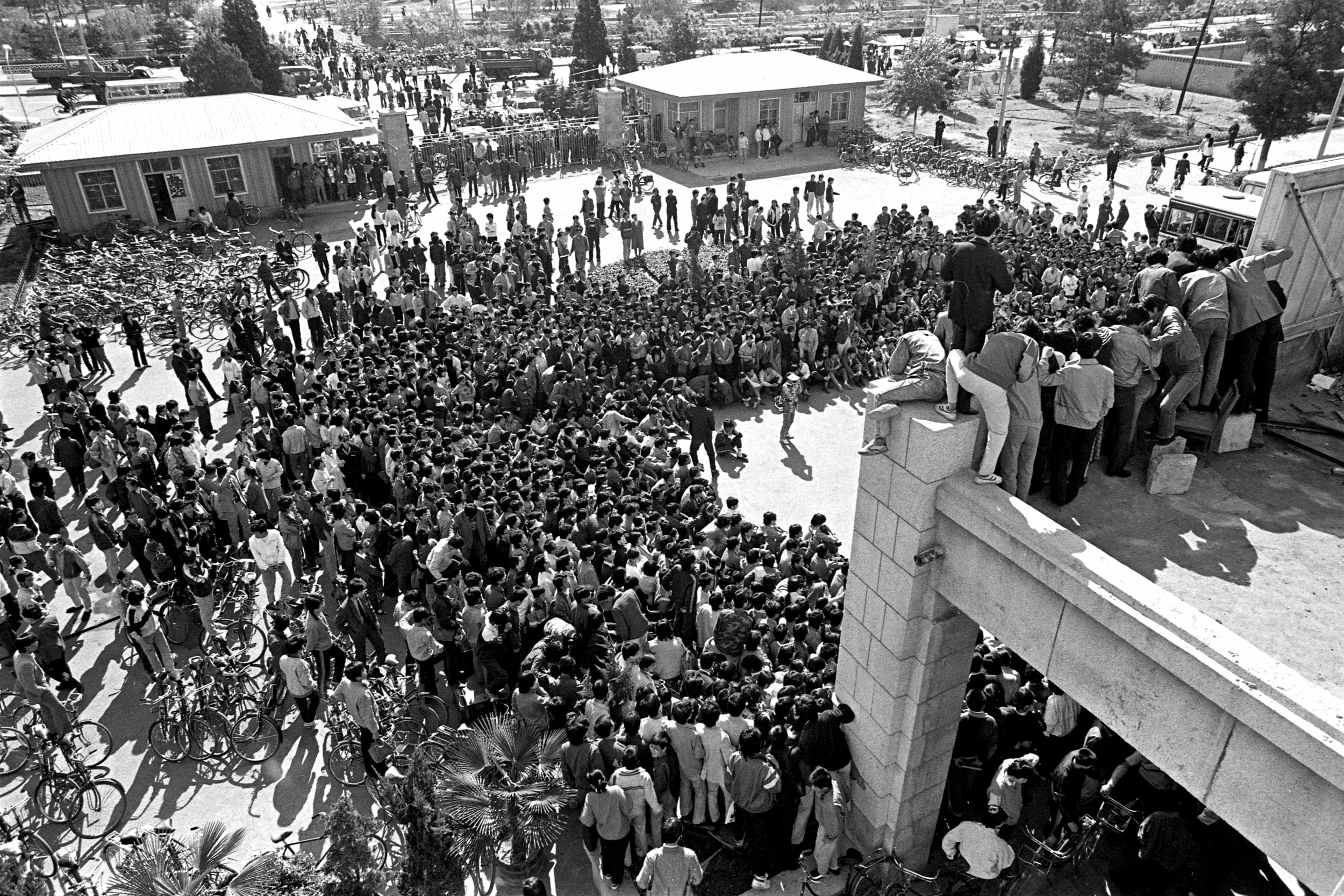Watching the Beijing Students' Autonomous Federation press conference from a higher floor. Photo taken on April 26, 1989. Photo credit: Hsieh San-tai, Howling 1989.